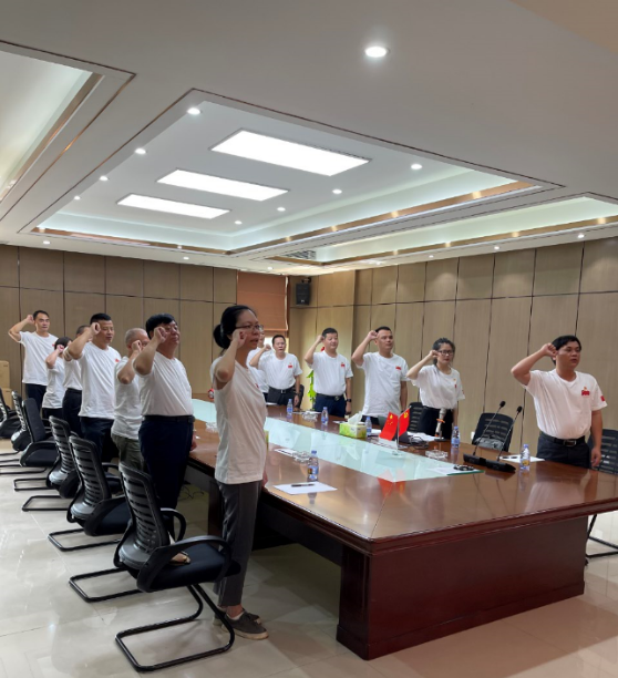 座谈会正式开始后,全体起立,面向党旗,举起右拳,全体党员同志庄严地重温了一遍入党誓词。
